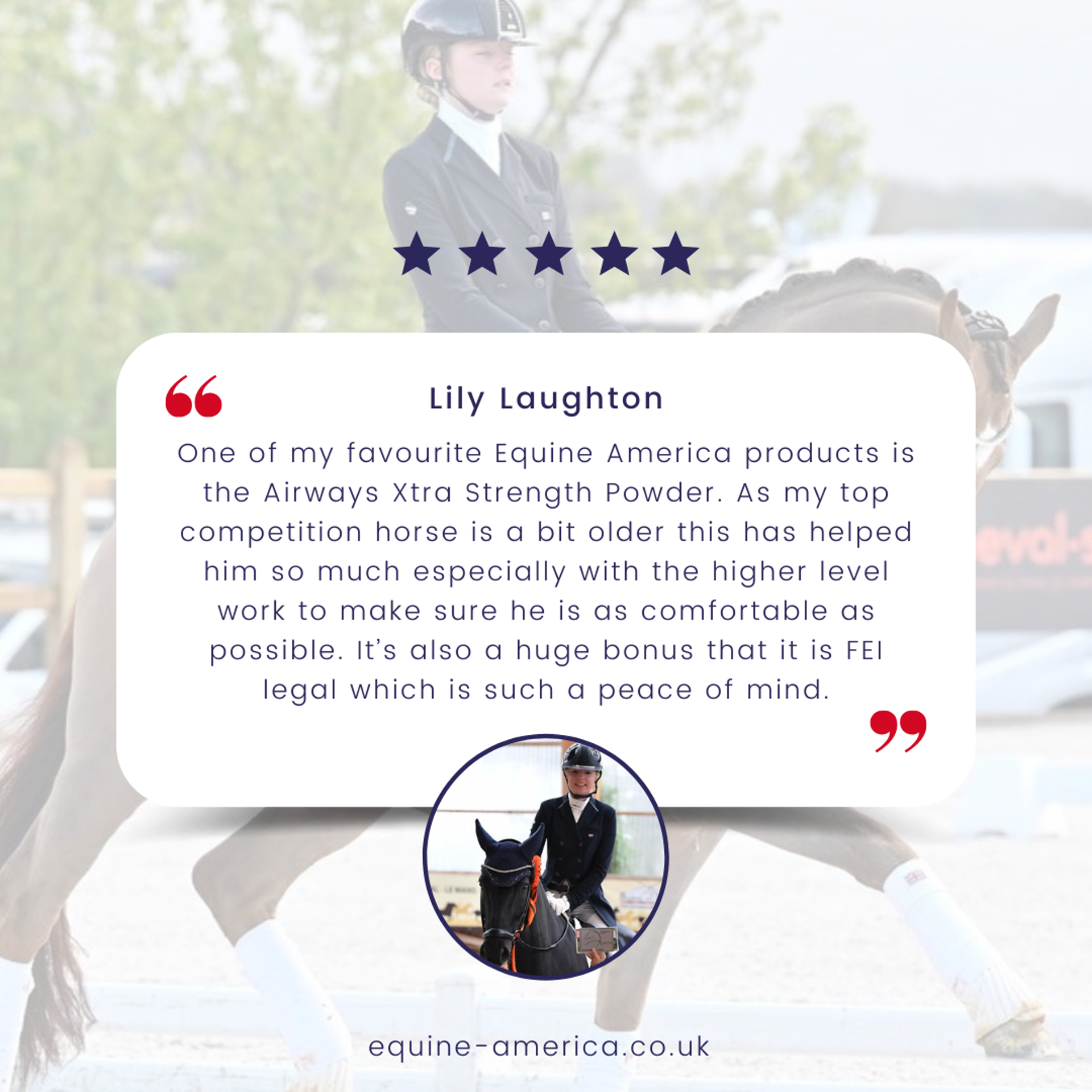 Targeted nutritional support can help the horse’s natural defences against such challenges. Equine America Airways Xtra Strength Powder contains a powerful blend of plant-derived, concentrated essential oils to help maintain clear, healthy airways.