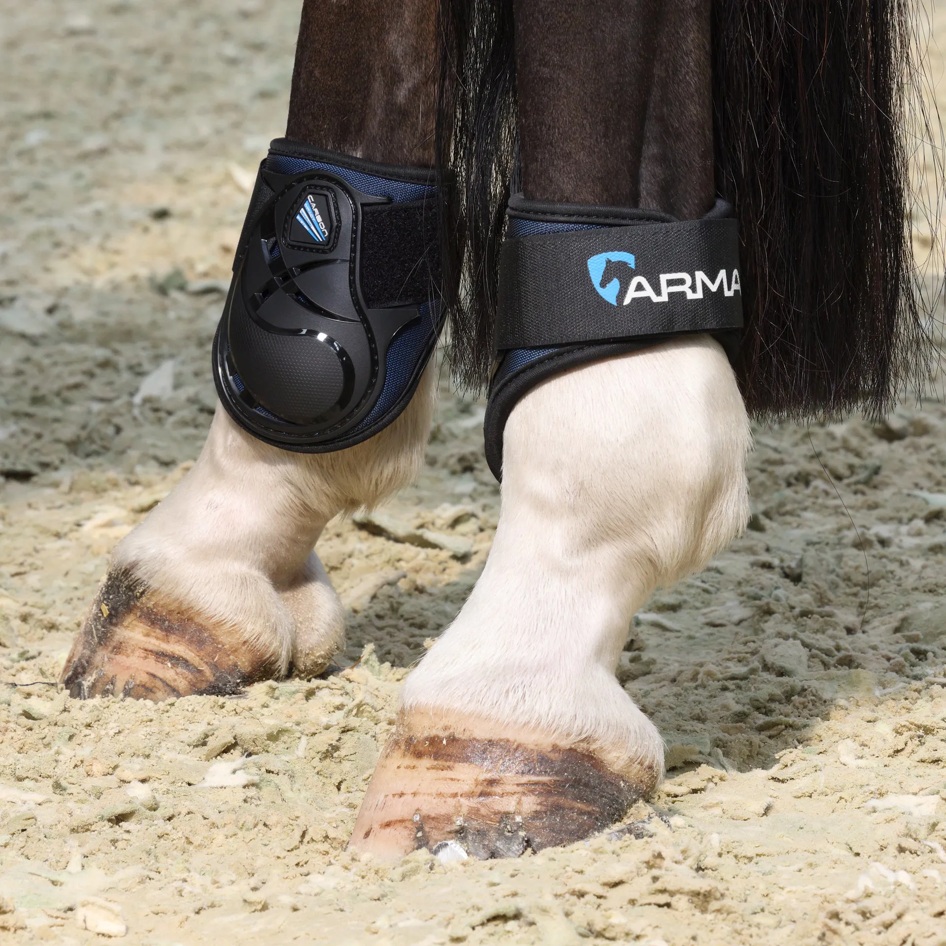 ARMA Carbon open fronted fetlock boots offer next level protection whilst still allowing the horse to feel their way.
