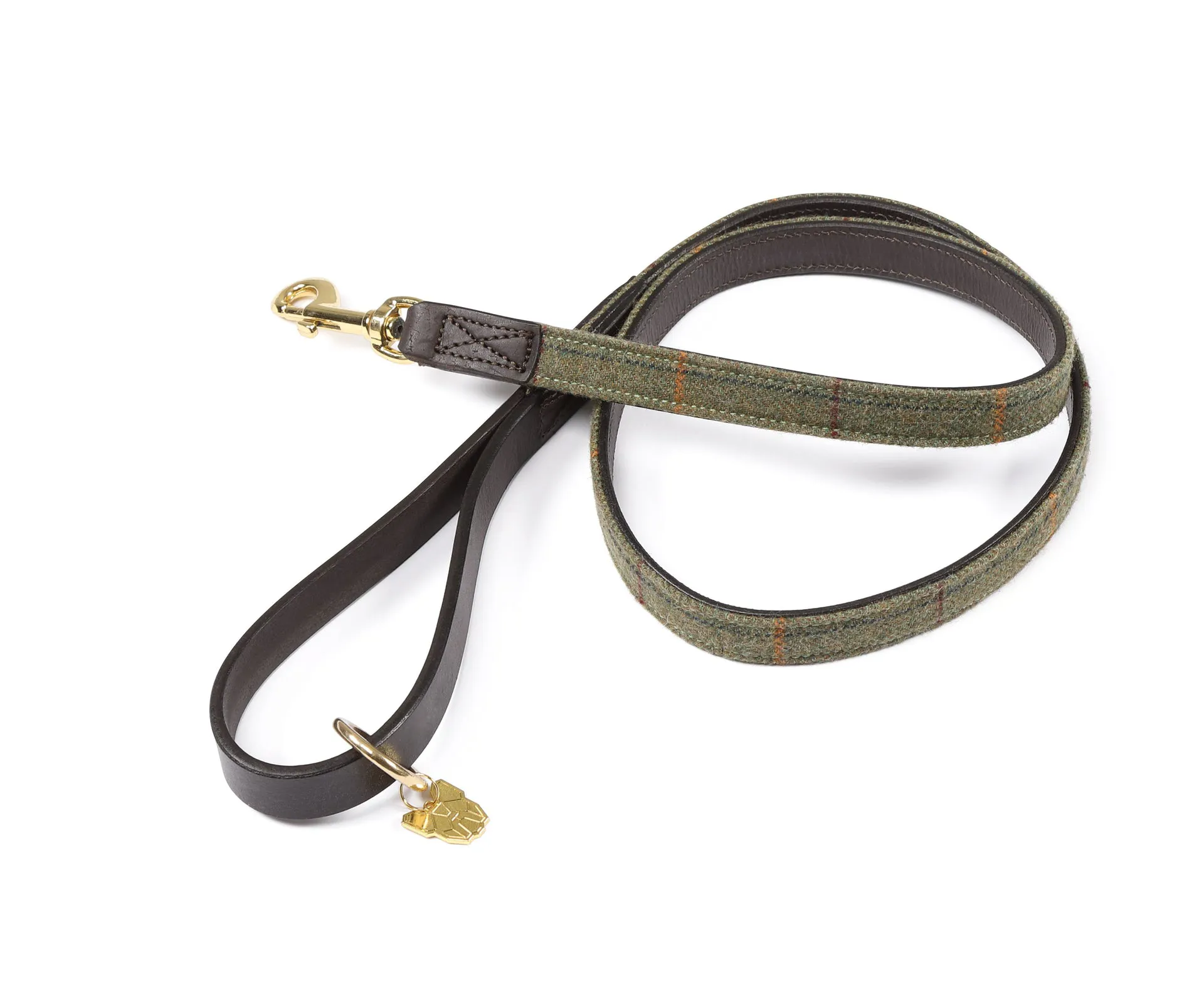 Crafted from 100% polyester tweed, this lead features a durable leather handle and a secure zinc die cast trigger clip.