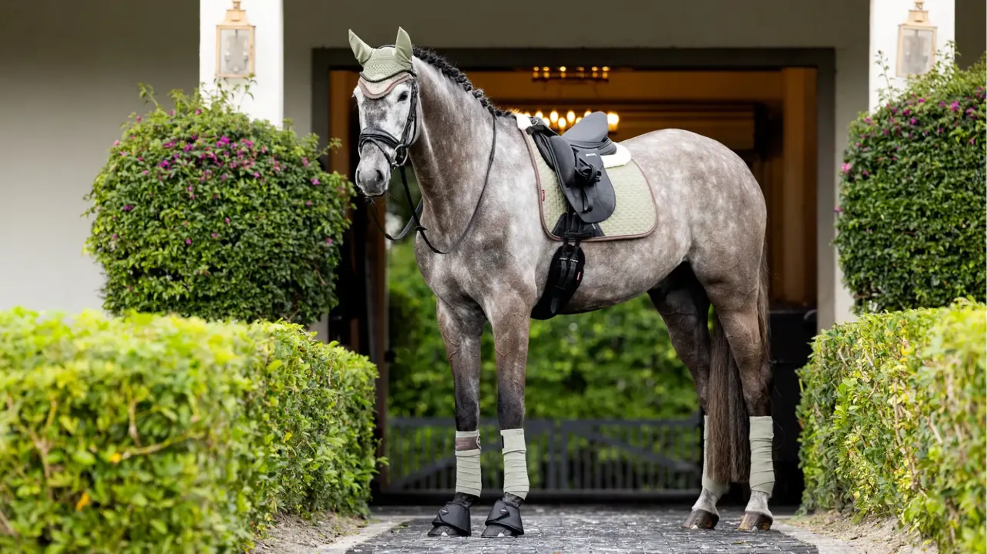 Match your Suede Dressage Square with a Classic Fly Hood in the same colour to complete the look.